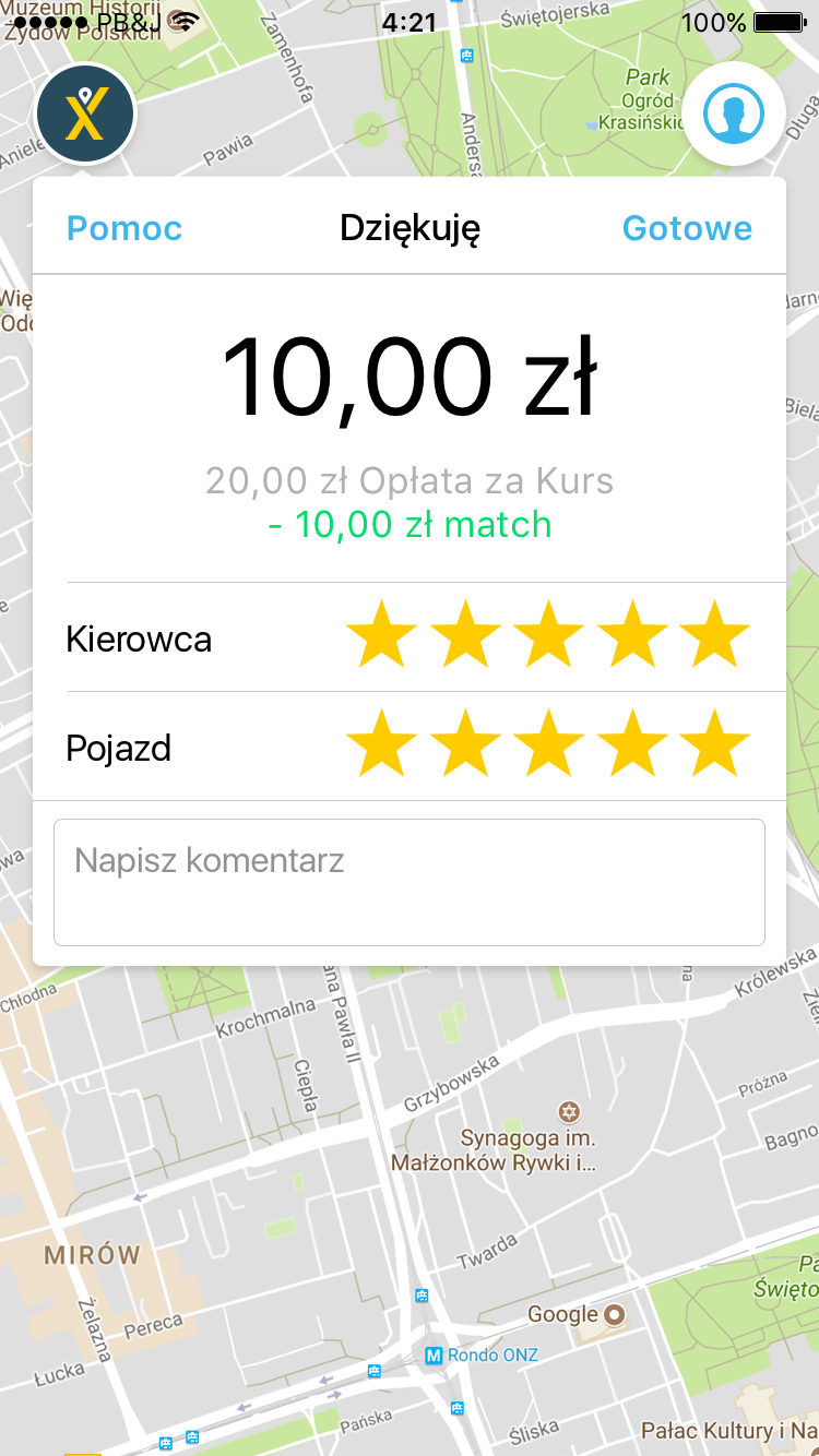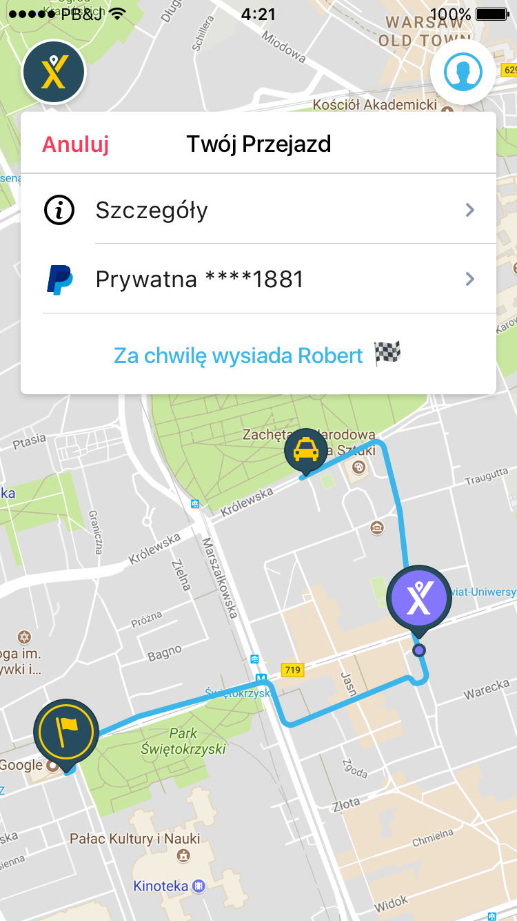 - Wpisać adres docelowy i zamówić taksówkę. Po chwili aplikacja znajdzie kierowcę.