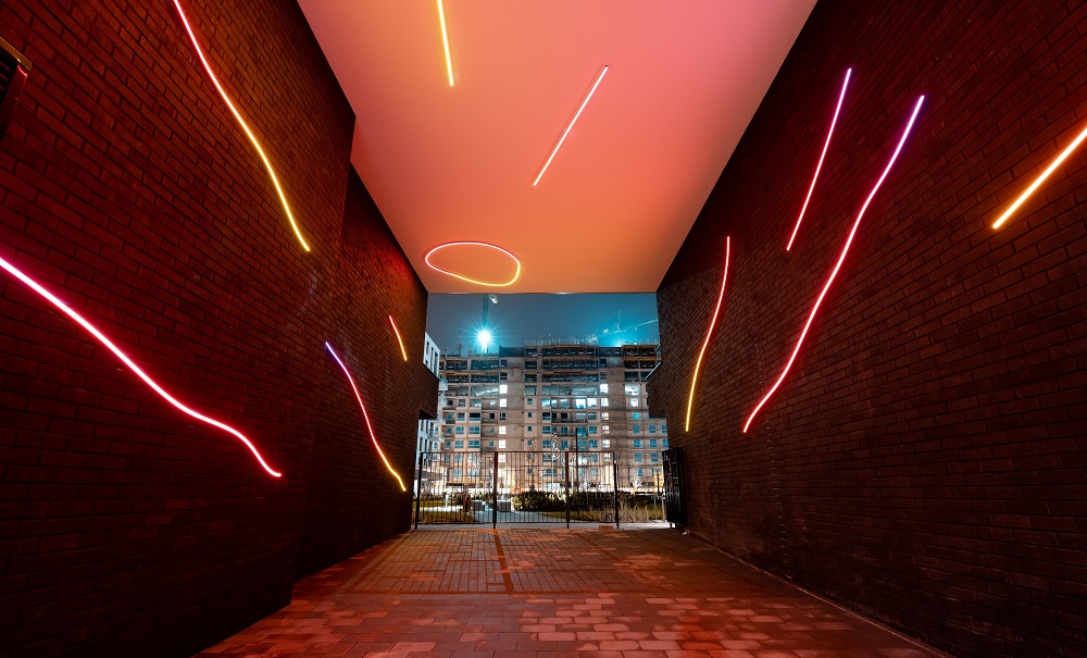 Artysta Rafał Dominik w nawiązaniu do neonu „Słońce” zaprojektował także świetlną instalację, pod tytułem „Promienie”, zdobiącą główne wejście od ul. Przasnyskiej do kolonii budynku mieszkalnego.