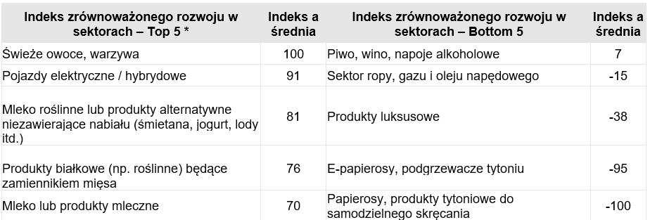 Raport, oparty na wynikach 26 tys. wywiadów przeprowadzonych na całym świecie (w tym: w Polsce) oraz bazujący na 17 Celach Zrównoważonego Rozwoju ONZ, przedstawia ocenę 42 kategorii produktów i usług pod kątem podejmowanych przez nie działań na rzecz zrównoważonego rozwoju. W obecnej, trzeciej już edycji badania po raz pierwszy porównano i policzono, za sprawą wystandaryzowanych wskaźników, jak konsumenci postrzegają kwestię zrównoważonego rozwoju w różnych sektorach. Zaskakuje konstatacja, że konsumenci postrzegają branżę dóbr luksusowych jako podobną do sektora ropy, gazu i oleju napędowego pod względem postępów w kwestiach społecznych i środowiskowych, choć nie w takim stopniu jak branżę papierosów tradycyjnych lub elektronicznych. Wszystkie cztery sektory znajdujące się na dole tabeli rankingowej są gotowe na radykalne innowacje, które umożliwią im przetrwanie.