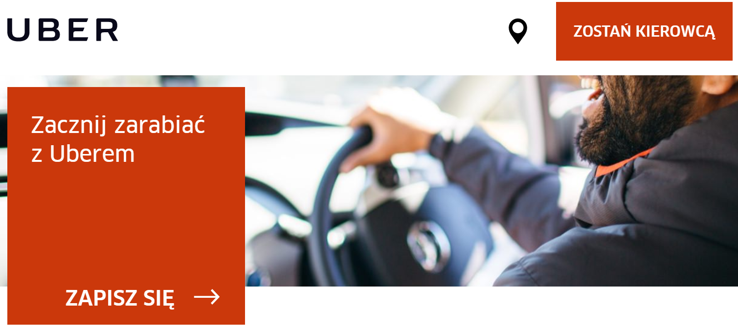 Dobry copywriting, zawierający CTA powinien być krótki, treściwy i napisany przystępnym językiem. Ważne, żebyśmy w jasny sposób pokazali użytkownikowi, co zyska i jakie odniesie korzyści, jeśli zrobi to. Dobrym przykładem zastosowania przystępnego Call To Action jest strona Ubera. Z tekstu jasno wynika, dlaczego warto zapisać się do bazy kierowców.