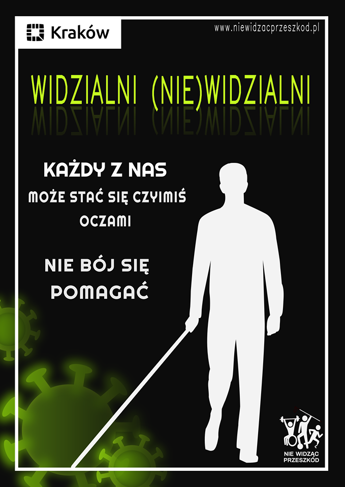 8 czerwca br. ruszyła kampania społeczna „Widzialni (Nie)widzialni”, której inicjatorem jest Fundacja Nie Widząc Przeszkód przy ścisłej współpracy z Urzędem Miasta Krakowa. Celem akcji jest zwrócenie uwagi na sytuację osób niewidomych i słabowidzących, która w dobie pandemii, a także po jej zakończeniu może ulec pogorszeniu.