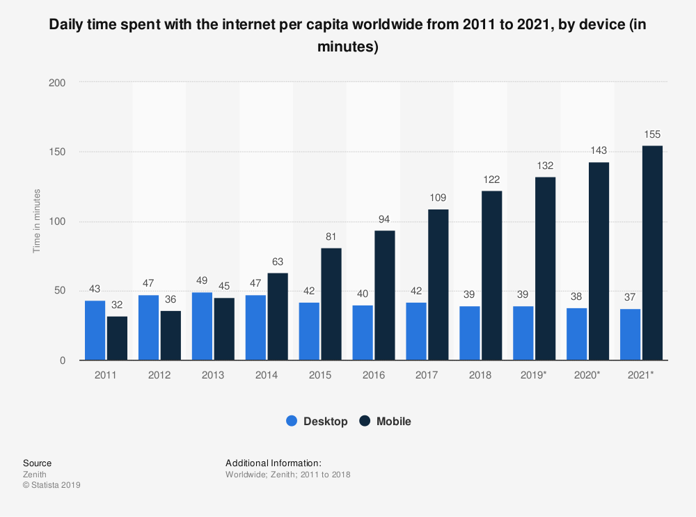 Źródło: www.statista.com/statistics/319732/daily-time-spent-online-device/