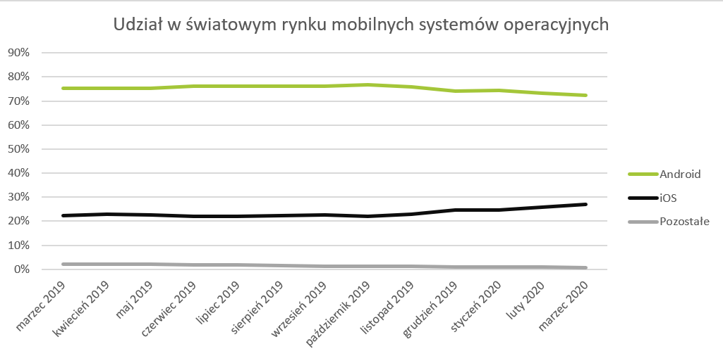 Źródło: gs.statcounter.com/os-market-share/mobile/worldwide