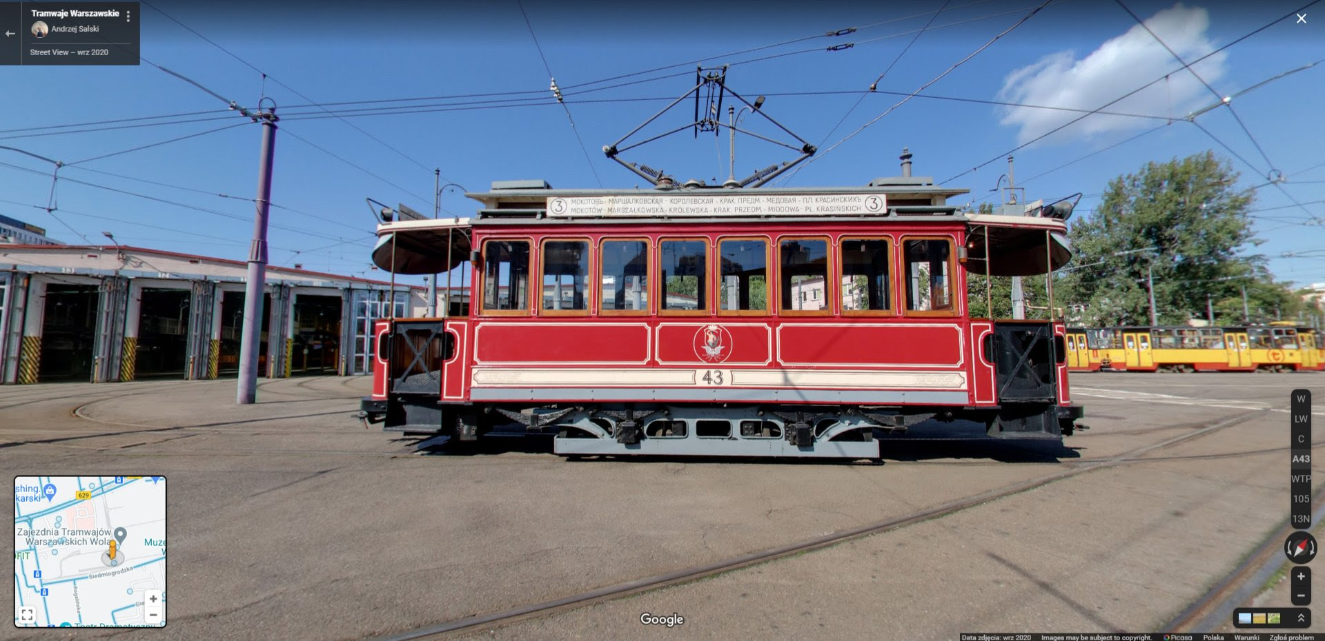 Najmłodszy, to tramwaj promocyjny, który używamy do przewożenia wycieczek. Jest też najbardziej warszawski z warszawskich tramwajów, czyli unikalna parówka z lat 60, a także tramwaj kabriolet z lat 30. czy przepiękny wagon techniczny z lat 20. Aby rozpocząć spacer po wagonie, wystarczy wejść na „wizytówkę” Tramwajów Warszawskich w Mapach Google albo znaleźć zajezdnię na Woli i najechać figurką widoku ulicznego na teren zakładu.