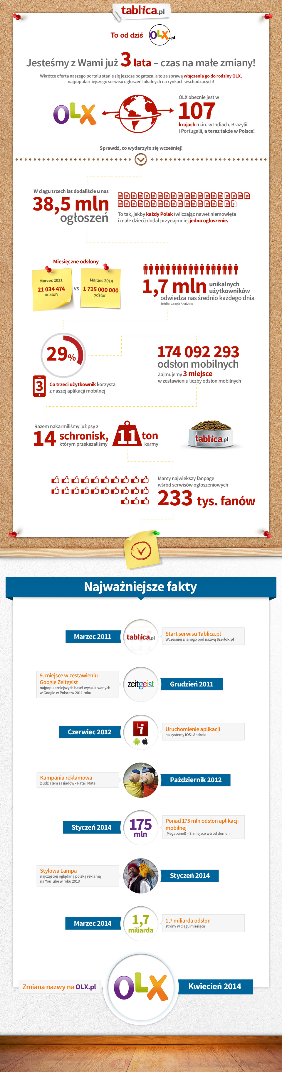– Zmiana nazwy serwisu to jedyna zmiana z perspektywy użytkowników. Nadal będą mogli korzystać z tej samej dobrze znanej i lubianej platformy, która przez ostatnie lata była ulepszana pod kątem ich potrzeb. Stając się częścią globalnej rodziny OLX będziemy mogli wymieniać się wiedzą z praktykami z całego świata, co z pewnością przełoży się na dalszy rozwój naszego serwisu i przyniesie więcej korzyści użytkownikom – mówi Marcin Urbańczyk, dyrektor zarządzający serwisu OLX.pl, który od początku kierował też serwisem Tablica.pl.