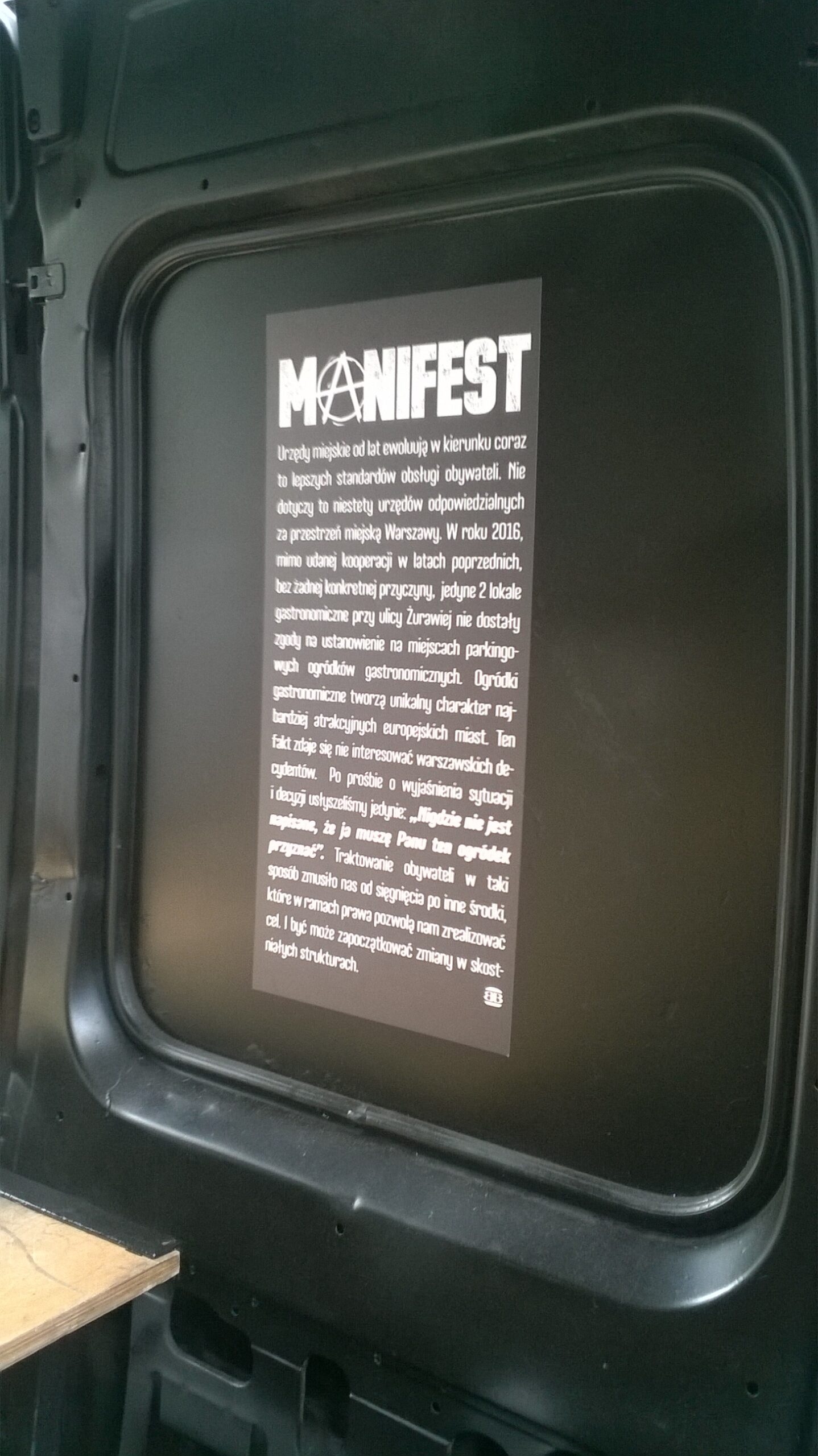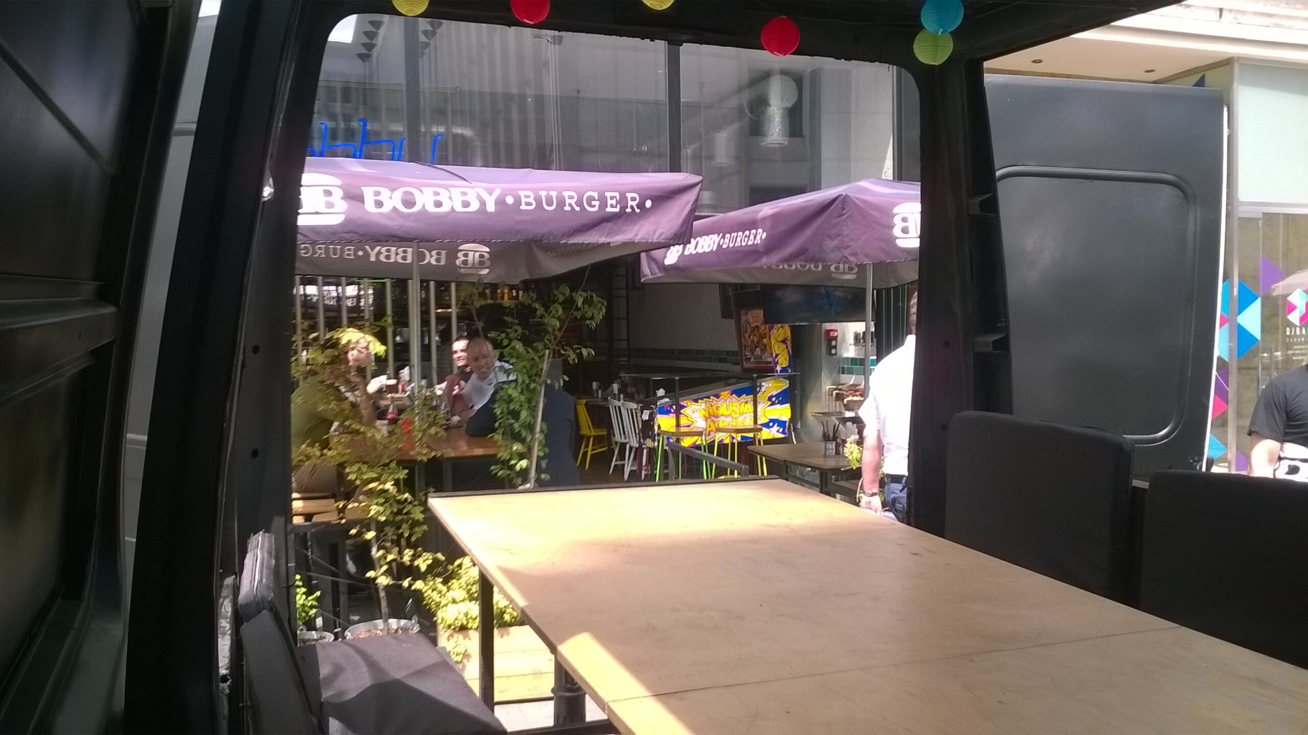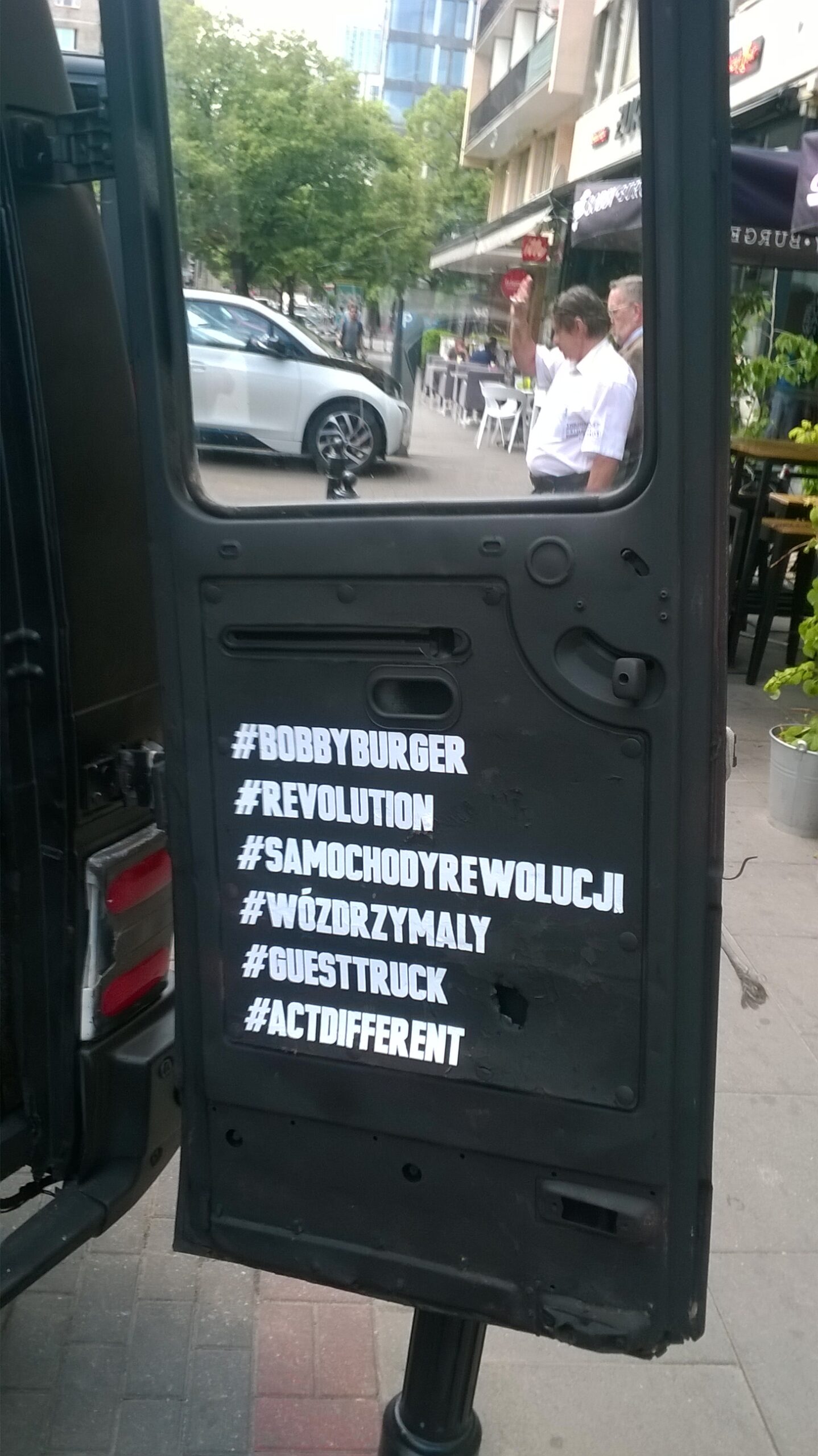 Dwa zaadaptowane na restaurację samochody zaparkowały przy ulicy Żurawiej 32/34 na cały sezon letni. Mają stanowić substytut ogródka gastronomicznego i wynagrodzić gościom lokalu jego brak. Na to niebanalne rozwiązanie wpadł Bogumił Jankiewicz, współwłaściciel sieci Bobby Burger, który nie zamierzał poddać się niczym nieuargumentowanej decyzji urzędników odpowiedzialnych za przestrzeń miejską.