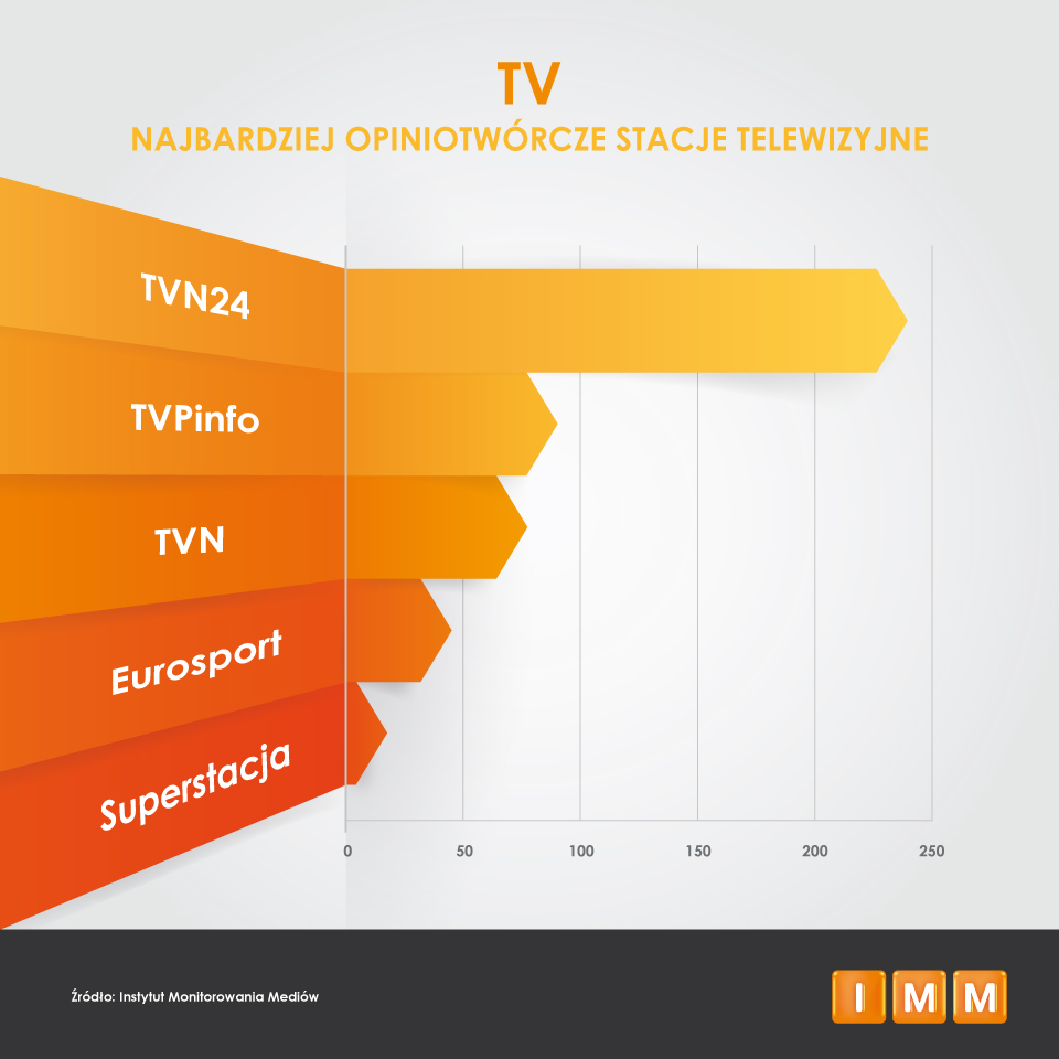 W kategorii stacje telewizyjne, najczęściej powoływano się na informacje podawane na antenie TVN24.