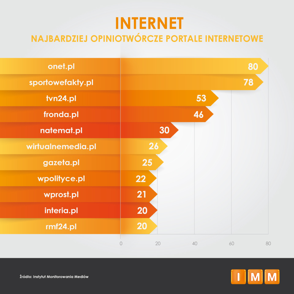 Wśród najczęściej cytowanych portali na pierwszym miejscu sklasyfikowano onet.pl i SportoweFakty.pl.