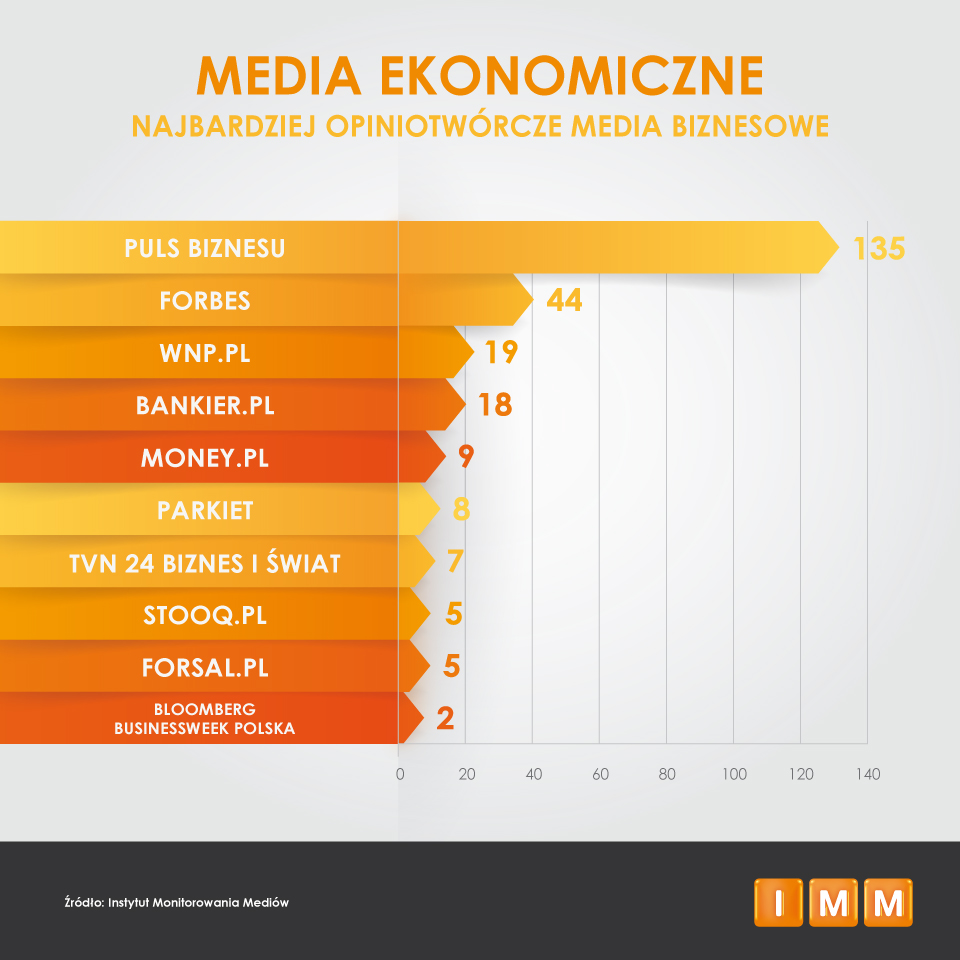 Najczęściej przywoływanym medium ekonomicznym był Puls Biznesu. Najczęściej cytowanym portalem został wnp.pl, a telewizją – TVN 24 Biznes i Świat.