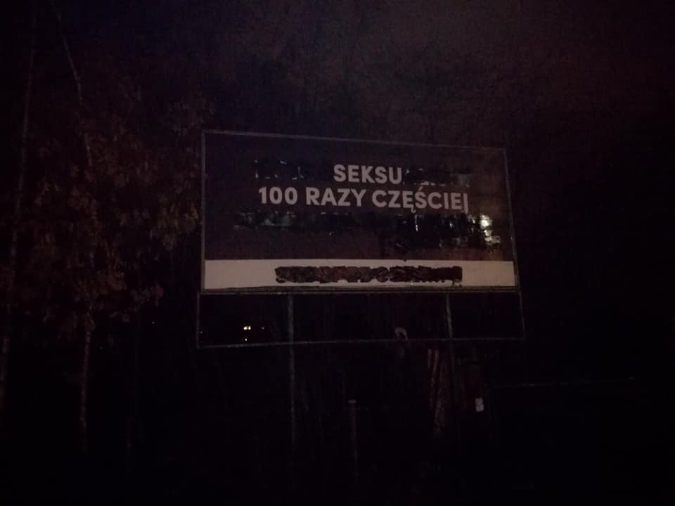 Aktywiści z Wrocławskiej Grupy Nieznanych postanowili nieco zmienić przekaz tego billboardu – wymazali część słów i w efekcie został tylko napis „Seksu 100 razy częściej”. Jak sami przyznali w poście opublikowanym na swoim facebookowym profilu, zmienili „mowę nienawiści w mowę miłości”.