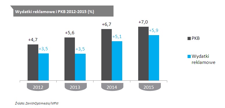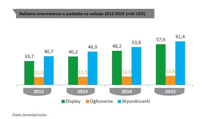 Internet przynosi także najwięcej nowych wydatków na reklamę. ZenithOptimedia szacuje, że w latach 2012–2015 Internet zapewni 66% wzrostu wydatków reklamowych. Zaraz za nim uplasuje się telewizja, która przyczyni się do 36% wzrostu.