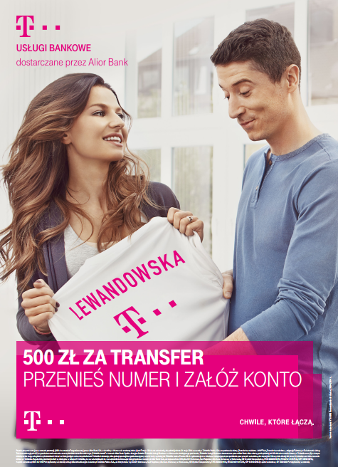 Twarzami T-Mobile zostali Anna i Robert Lewandowscy, promujący innowacyjną ofertę łączącą telekomunikację z bankowością – efekt współpracy T-Mobile i Alior Banku. Kampania z udziałem znanego małżeństwa sportowców promuje ofertę „500 zł za transfer”. Skierowana jest ona do osób, które przeniosą numer do T-Mobile, wybiorą jedną z dedykowanych ofert i założą T-Mobile konto, dzięki czemu otrzymają łącznie nawet 500zł za „transfer”.