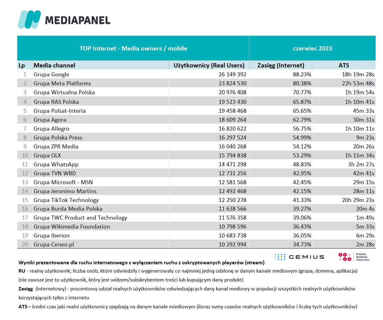 PS Wyniki badania Mediapanel za kwiecień 2023