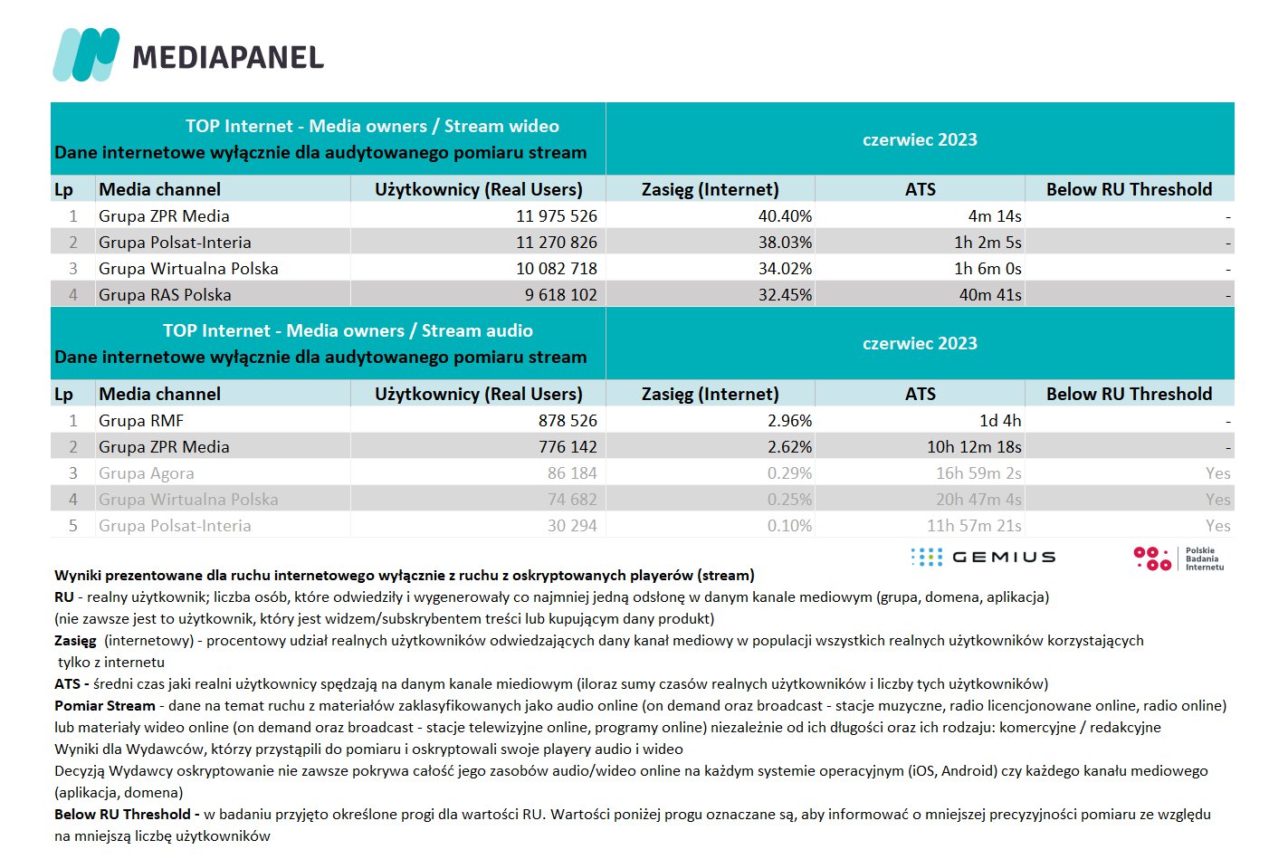 Prezentujemy również zestawienie audytowanych playerów audio i wideo – ich wyniki pokazujemy w agregacji do grup mediowych, biorących udział w badaniu.