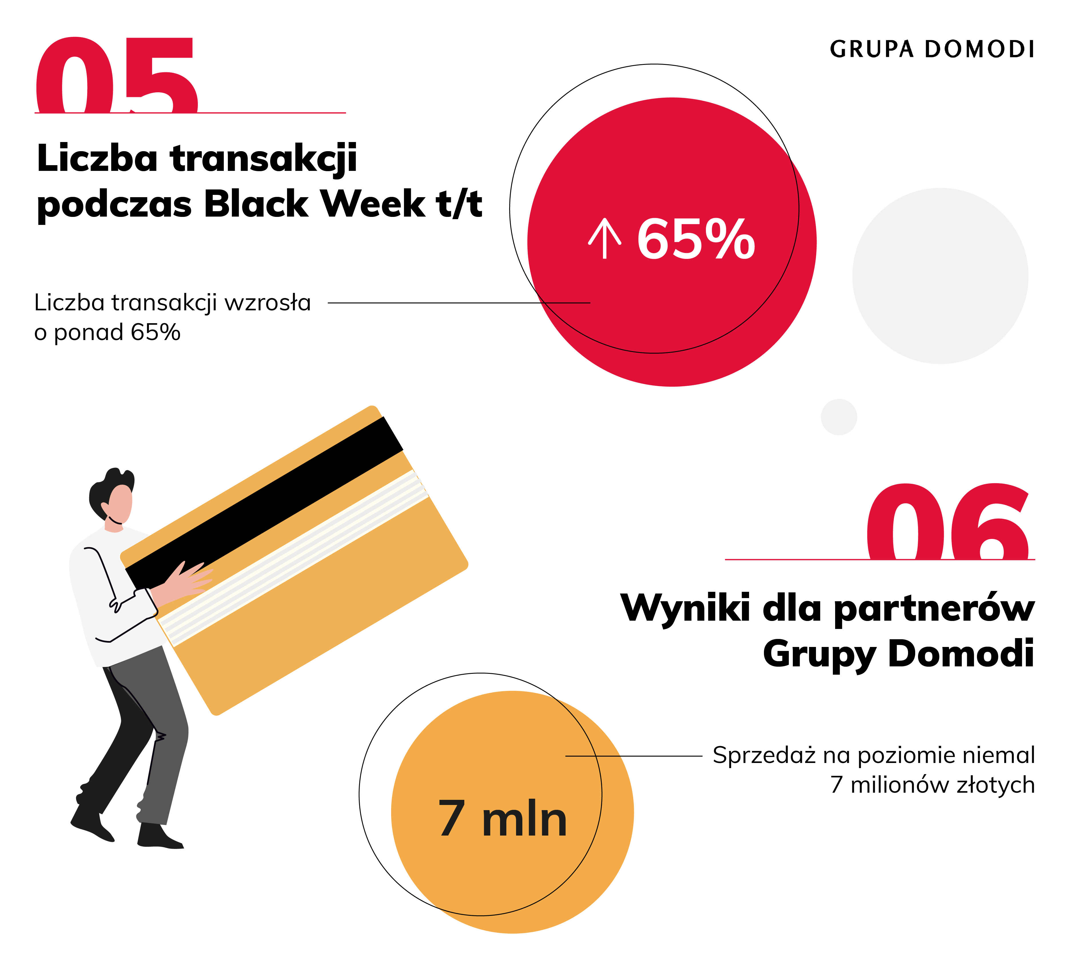 Porównując transakcyjność i GMV na platformach Grupy Domodi podczas Black Week obserwujemy znaczne wzrosty – liczba transakcji t/t wzrosła o ponad 65%, generując dla partnerów Grupy Domodi przychody rzędu niemal 7 milionów złotych. Zestawiając te wyniki z poprzednimi latami oraz obecną sytuacją rynkową można wyciągnąć wnioski, że Black Week w Polsce nadal ma się dobrze i jest prawdziwym świętem e-commerce’u, szczególnie w branży fashion.