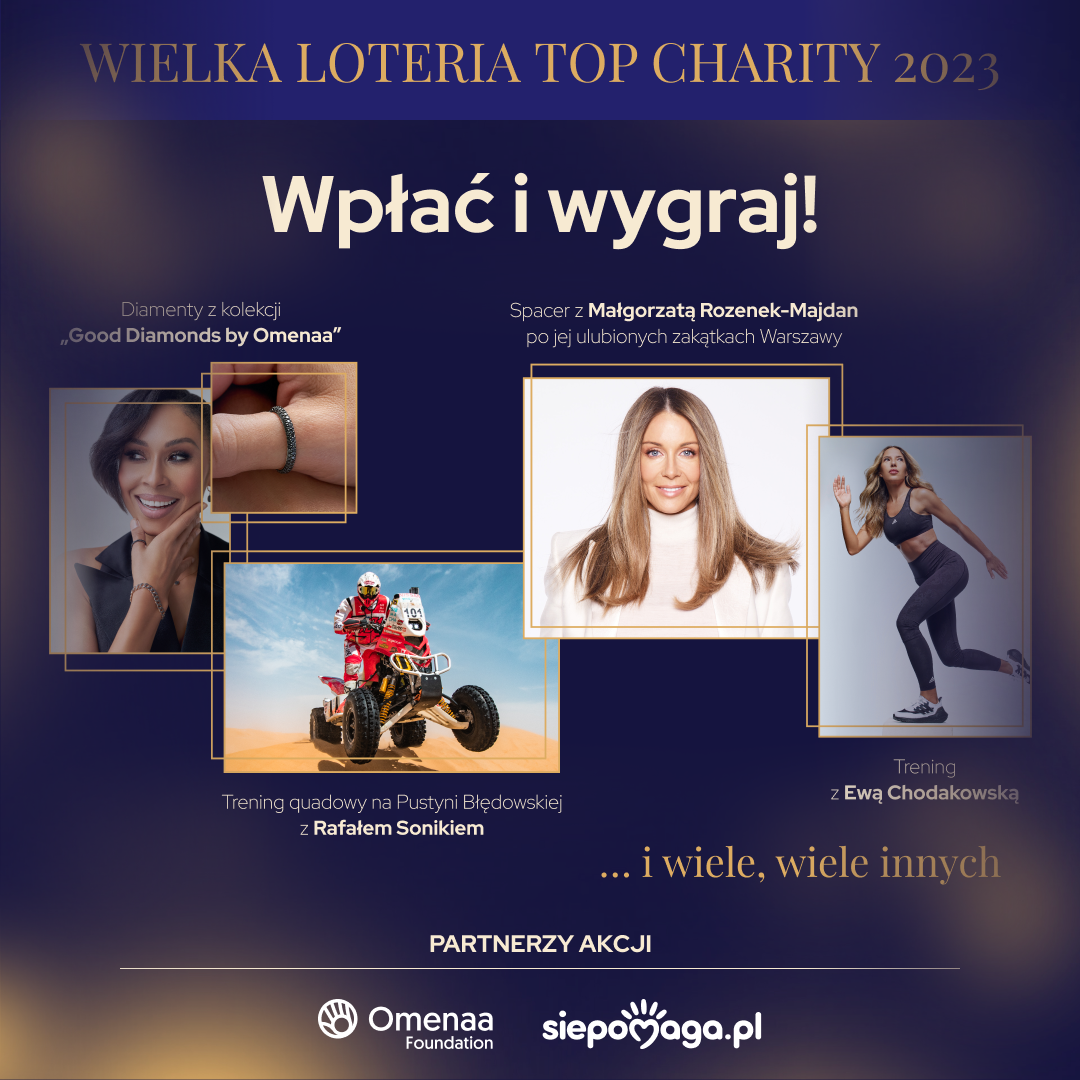Ta niecodzienna inicjatywa została powołana przez połączenie sił Fundacji Siepomaga i Omenaa Fundation. Główny cel loterii „Wielka Loteria Top Charity” to zebranie środków, które w całości zasilą Omenaa Foundation. Organizacje od lat realizują projekty związane z edukacją, wspieraniem podopiecznych domów dziecka, a także funkcjonowanie ośrodków Rio Edu Centrum (wsparcie edukacyjne uchodźców z Ukrainy) i Rio Vibe Centrum (wsparcie psychologiczno-terapeutyczne dzieci z doświadczeniem uchodźczym, a także podopiecznych domów dziecka). Omenaa Foundation to także wsparcie dzieci ulicy w Ghanie.
