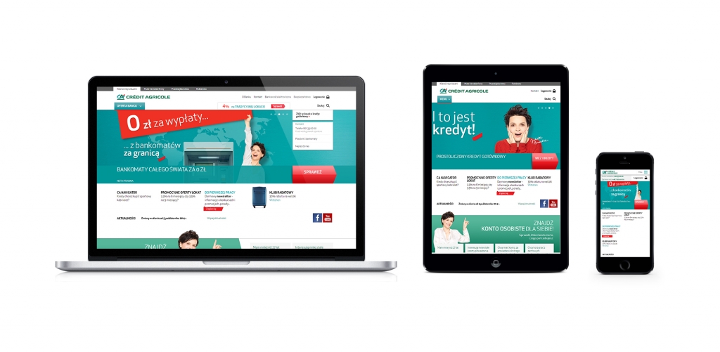Patrząc na stale rosnącą liczbę użytkowników urządzeń mobilnych, można zaryzykować postawienie tezy, że RWD przestaje być innowacyjną ciekawostką, a staje się standardem. Już w tej chwili blisko 12% odwiedzin serwisu www.credit-agricole.pl pochodzi ze smartfonów i tabletów, a trend wzrostowy jest bardzo wyraźny. Bank szacuje, że do końca roku już 20% ruchu w serwisie będzie pochodzić z tego źródła. Warto podkreślić, że Credit Agricole jest jednym z pierwszych banków w Polsce, który wdrożył stronę zaprojektowaną w RWD. Nadal jednak wiele serwisów instytucji finansowych jest niedostosowanych do potrzeb posiadaczy urządzeń mobilnych.