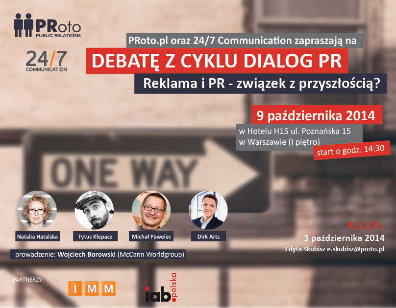 „Dialog odmieniamy w komunikacyjnym świecie przez wszystkie przypadki, teraz pora na dyskusję o przyszłości rynku PR i reklamy. Kto będzie w posiadaniu »story«? Czy PR to narzędzie, które uzupełnia kampanijne spoty? A może reklama będzie jedynie obrazować wizje kreśloną przez PR? Rynek się zmienia, widzimy to na co dzień – debata, której jesteśmy partnerem, to sposobność podzielenia się spostrzeżeniami z każdej perspektywy rynku” – zachęca Michał Szapiro, Director Corporate Communication & Reputation Management w 24/7 Communication.