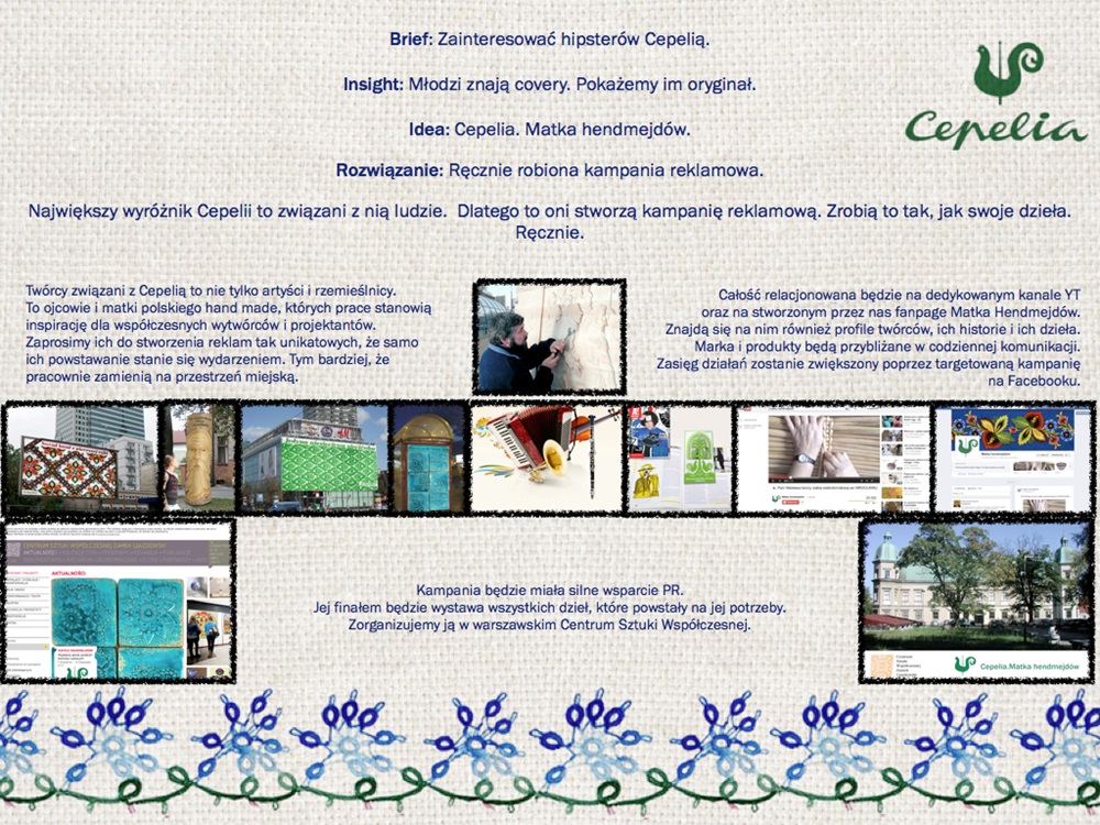 Partnerem kategorii Just Creatives była Cepelia. Uczestnicy mieli za zadanie stworzyć koncepcję kampanii zintegrowanej, mającej na celu przyciągnięcie młodych ludzi do sklepów Cepelii. Przewodniczącym jury Just Creatives był Tytus Klepacz (180heartbeats + Jung v. Matt). Kategoria Just Creatives skierowana jest do osób powyżej 29 roku życia, pracujących w branży komunikacji marketingowej.