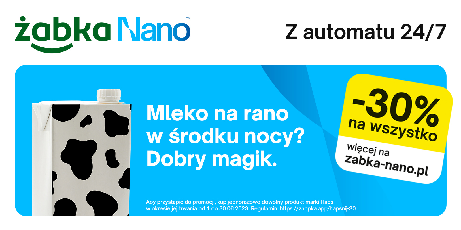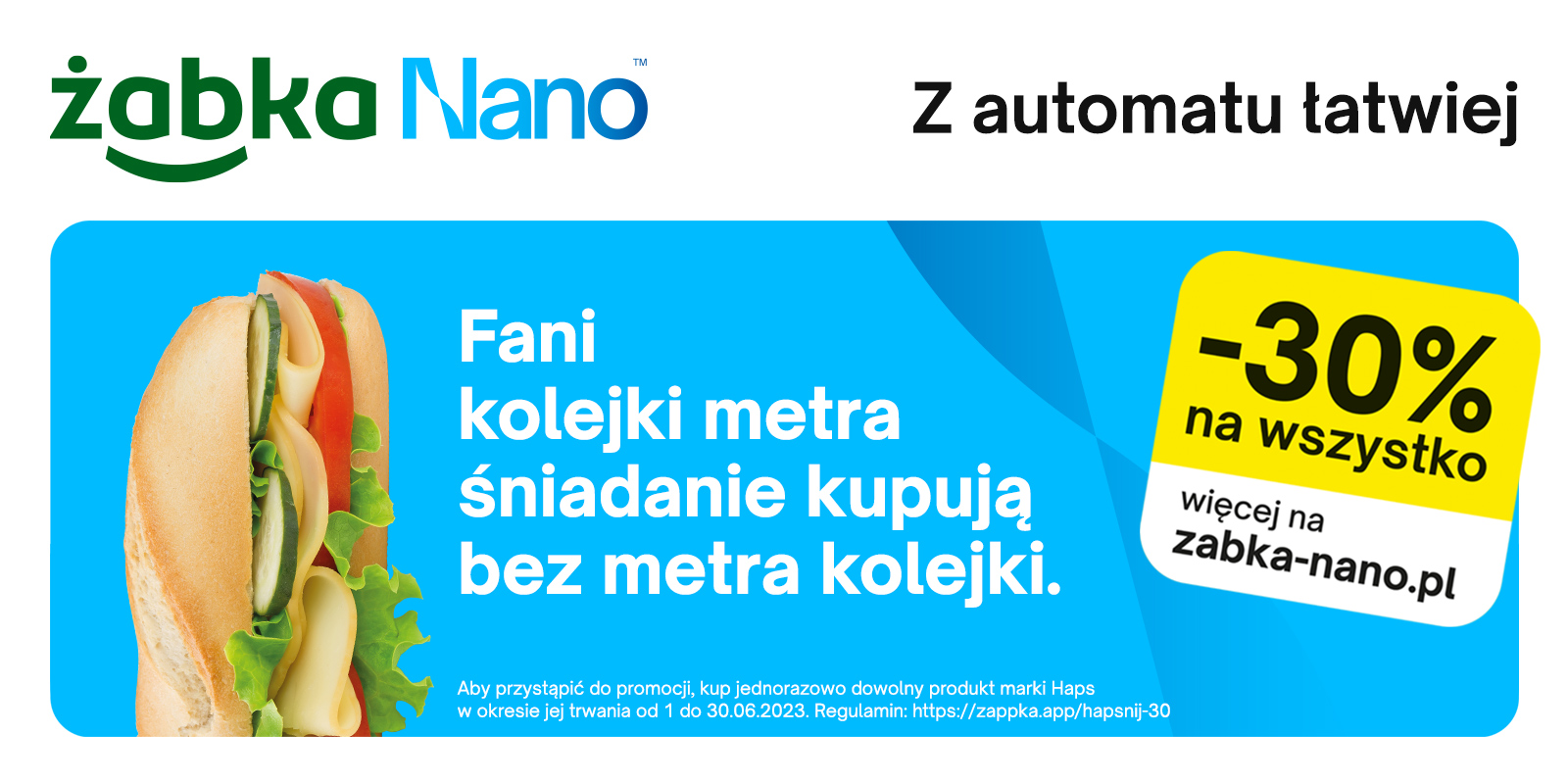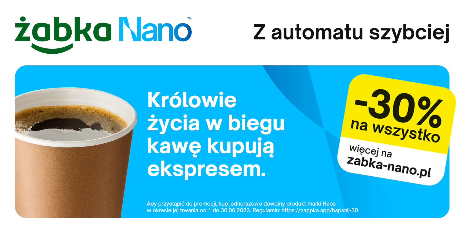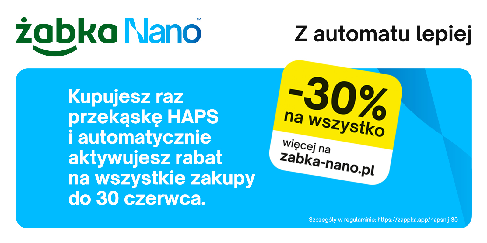 Kampanii towarzyszy akcja promocyjna, w trakcie której każdy, kto kupi jeden raz dowolną przekąskę marki HAPS, uzyska rabat 30% na pierwsze i wszystkie kolejne zakupy do końca czerwca br., bez limitu. Z promocji mogą skorzystać zarówno klienci wchodzący na kartę płatniczą, jak i aplikację Żappka. Zasady działania promocji opisano na stronie: https://zabka-nano.pl/