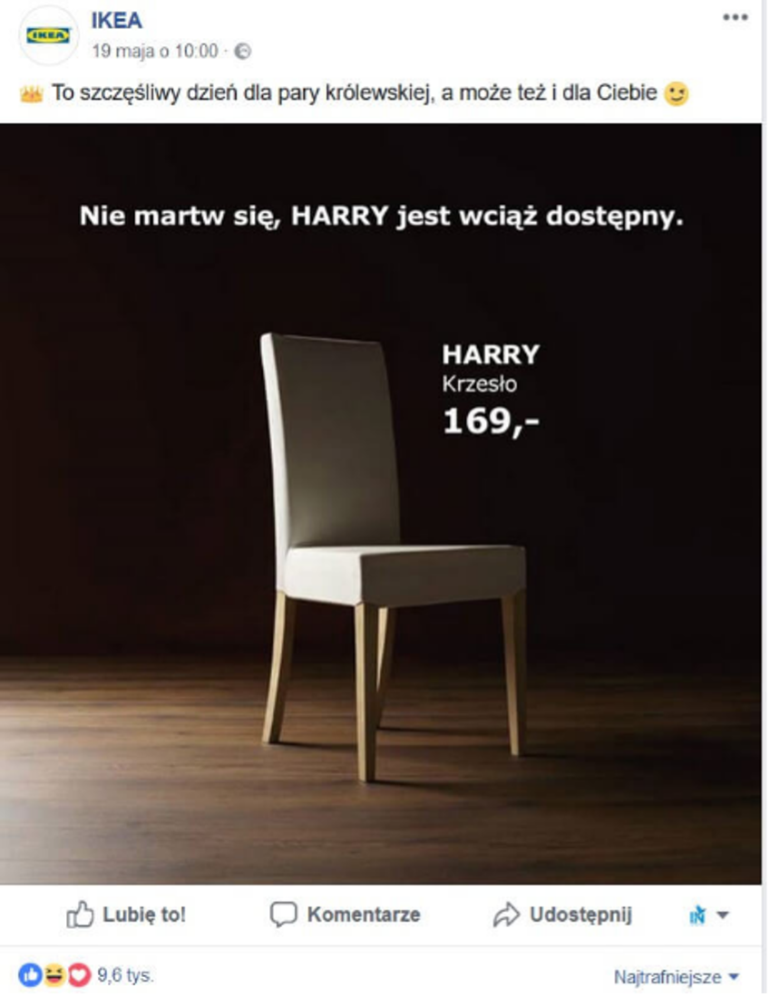 Komunikację na Instagramie chętnie podjęły marki, które dostrzegły okazję do przedstawiania swoich usług i produktów odbiorcom gustującym w ładnych zdjęciach. Szczególnie duże pole zyskały brandy modowe, ale jak czas pokazał, IG sprawdza się w przypadku większości firm. Najważniejszy jest pomysł, pozwalający na wyróżnienie się z tłumu. Warto przyjrzeć się profilom takich marek jak Ikea, która odważnie sięga także po Real Time Marketing. Jednym z przykładów jest akcja po ślubie Harry’ego i Megan z krzesłem o nazwie modelu „Harry” – „Nie martw się, Harry wciąż jest dostępny!” lub z tym samym produktem – „Jestem Harry, po prostu Harry” z cytatem kultowego Harry’ego Pottera. Po ten chętnie wykorzystywany ton komunikacji sięgają także inne marki np. LOT (akcja z Dreamliner = Śpiulkolot). Instagram nie zwalnia tempa. Obecnie każdego miesiąca korzysta z niego ponad 2 mld użytkowników.
