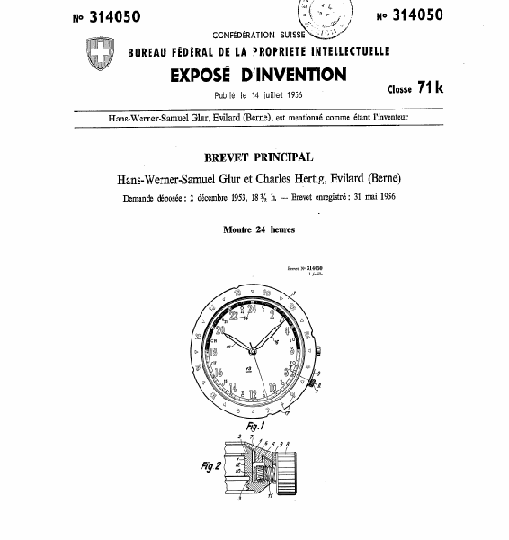 Glycine, aby dowieść, że powyższe zdarzenia naprawdę miały miejsce, udostępnia publicznie rękopis listu, jaki Sam Glur wysłał do swojego szefa Charlesa Hertiga D’Evilarda oraz patent nr CH314050 z 1953 roku, który tyczy się 24-godzinnego obrotowego bezela i zębatej koronki służącej jego blokowaniu.