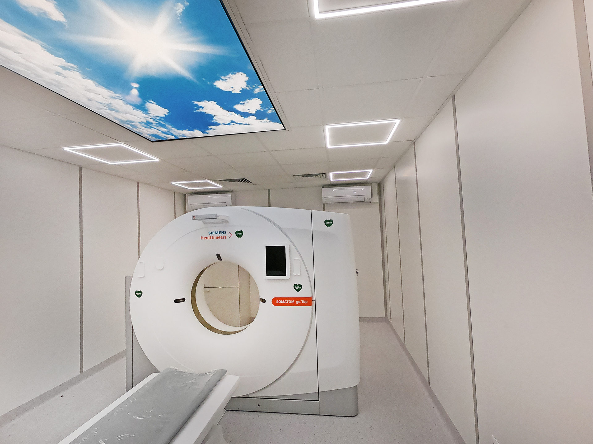 – SOMATOM go.Top z Siemens Healthineers to nowoczesny, 128-warstwowy tomograf komputerowy. Zapewnia najwyższą jakość obrazowania przy bardzo niskim poziomie dawki promieniowania i środków kontrastowych. Zastosowaliśmy w nim również wiele technologii zwiększających komfort pacjentów i obsługi. Także pomieszczenie kontenerowe jest zaprojektowane z myślą nie tylko o funkcjonalności, ale i o komforcie pacjenta: np. w suficie pawilonu umieściliśmy podświetlany panel naśladujący słoneczne niebo. Co istotne, wiele rozwiązań w SOMATOM go.Top obniża też koszty użytkowania – dzięki modułowej konstrukcji, zdalnej obsłudze serwisowej czy minimalnym wymogom środowiskowym, choćby zredukowanemu zużyciu energii elektrycznej – wyjaśnia Marek Witulski, dyrektor branży diagnostyki obrazowej Siemens Healthineers.