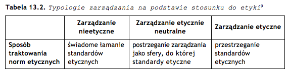 Postawy menedżerów wobec etyki ujmuje m.in. typologia Archiego B. Carrolla (patrz tabela 13.2). Podstawowym kryterium tej typologii jest stosunek do standardów etycznych: