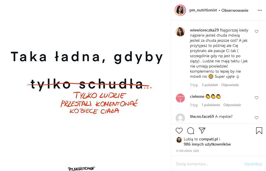 Kult ciała, szczupłości i „czystej miski” napędza Instagram od lat. Z drugiej strony nadciągają psycholożki, dietetyczki i terapeutki, które edukują w duchu HAES, intuicyjnego jedzenia, akceptacji ciała i normalizacji jedzenia, pomagając odbiorczyniom i odbiorcom rozpocząć walkę z zaburzeniami odżywiania.