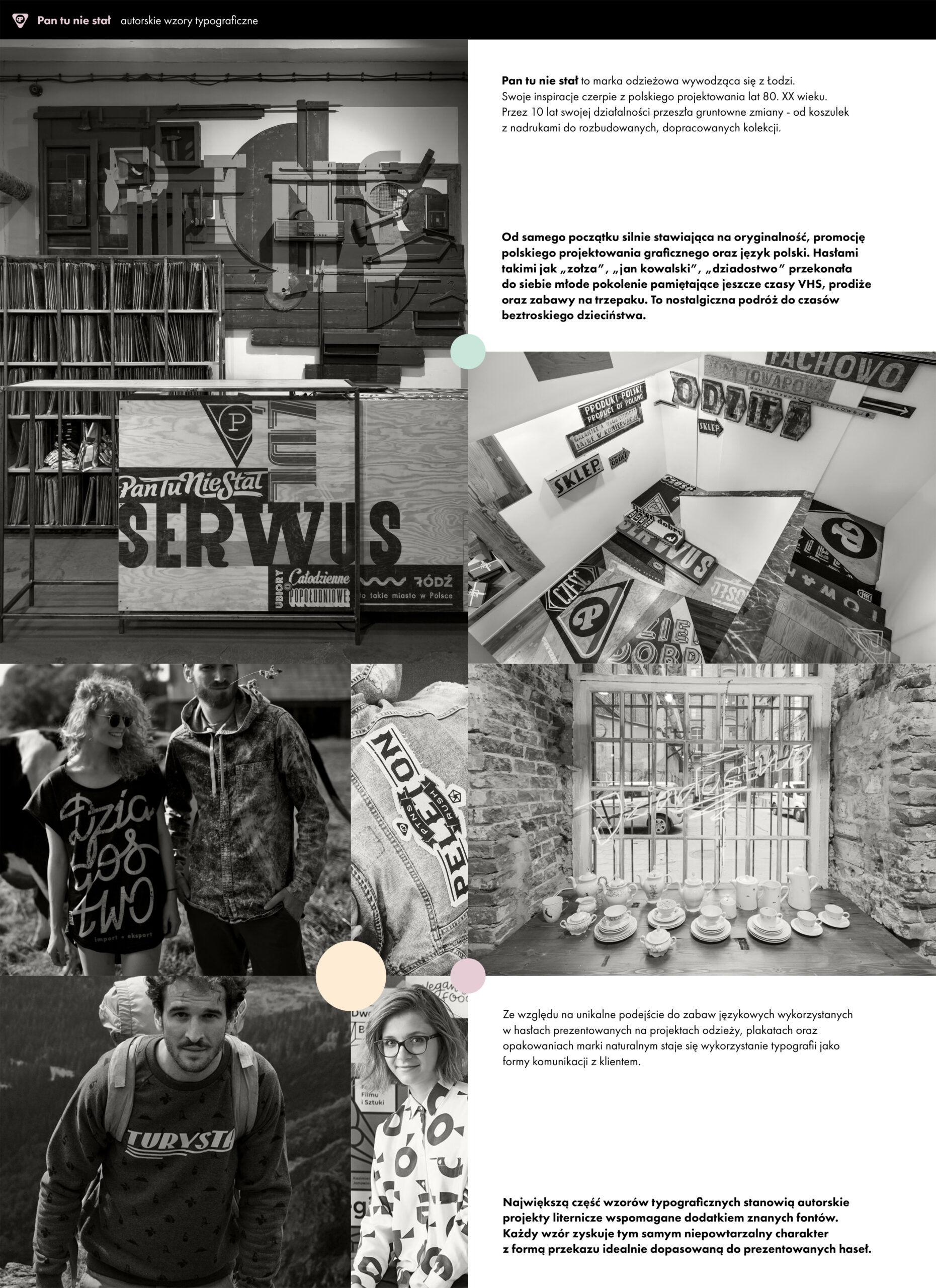 „W projektach Pan tu nie stał na pierwszym planie są zawsze litery i ilustracje. Od lat uczą nas, pół żartem pół serio odkrywać i doceniać powojenną tradycję polskiej typografii i projektowania. A dzięki przedmiotom codziennego użytku kształtują poczucie estetyczne naszych rodaków.” – Michał Pawlik, przewodniczący kategorii Design.