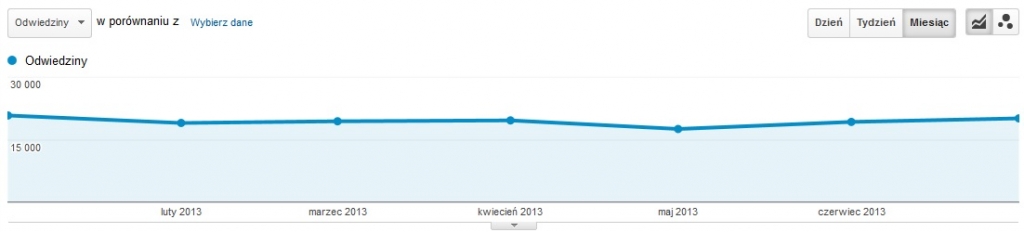 Na koniec proponujemy porównanie wykresu, który został przedstawiony na początku tego tekstu, z poniższym. Pod akapitem zobaczyć możecie wykres prezentujący liczbę wizyt pochodzących z wyników organicznych w serwisie, w którym na początku lutego zmieniony został CMS. Jednak podczas tej migracji pamiętano o powyższych rekomendacjach z zakresu SEO.