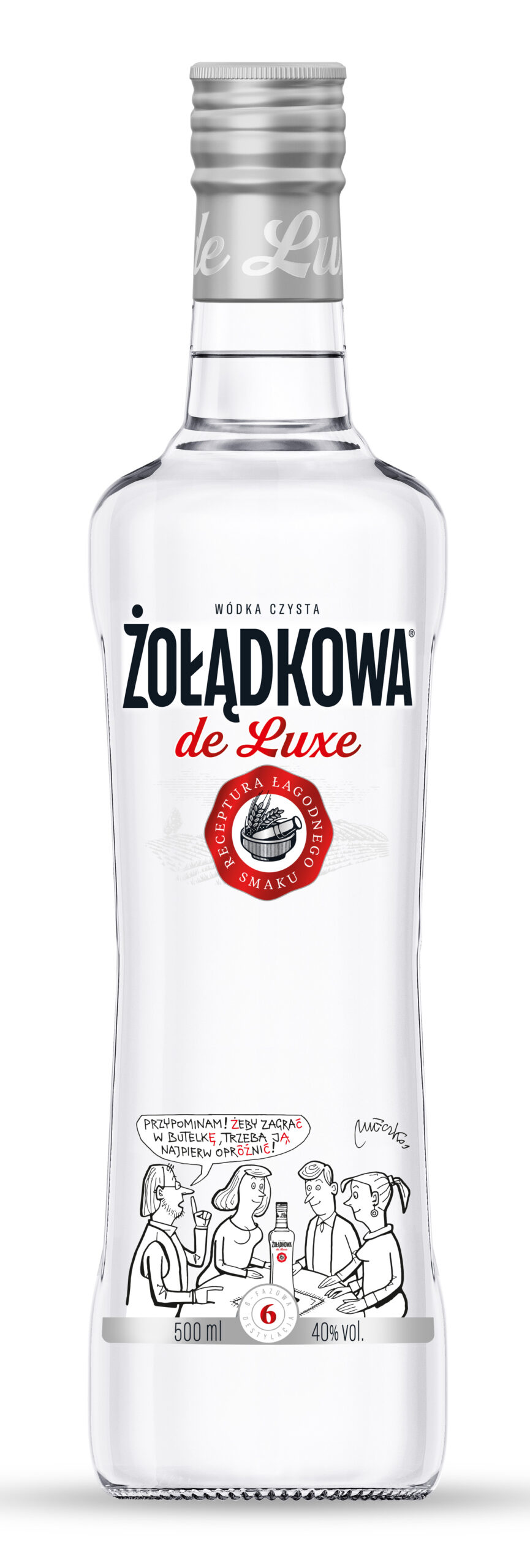 Andrzej Mleczko od lat przekazuje w swoich satyrycznych pracach treści nie tylko pełne humoru, ale też takie, z którymi identyfikują się Polacy. Tym razem jego charakterystyczne rysunki ozdobiły etykiety limitowanej edycji Żołądkowej de Luxe. Pięć różnych ilustracji w humorystyczny sposób przedstawia sytuacje, które dotyczą obyczajów picia wódki. Bez wątpienia znajdą one uznanie wśród osób zasiadających przy wspólnym stole i połączą je śmiechem, tak jak Żołądkowa de Luxe łączy łagodnością.