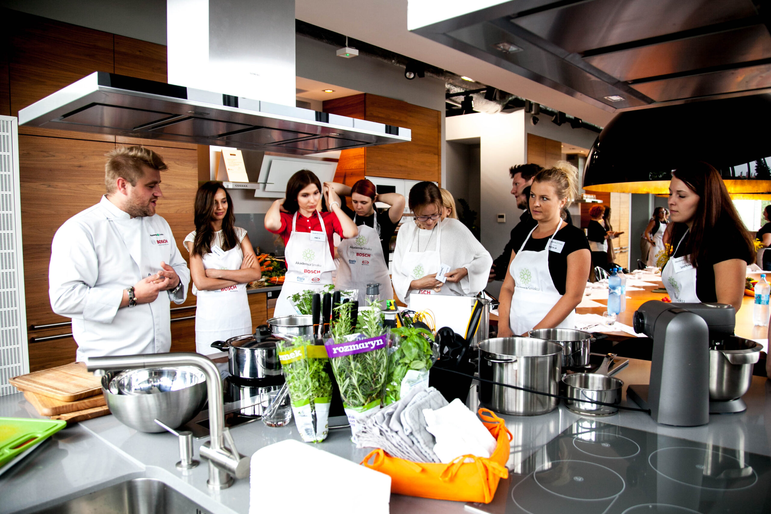 Adepci Akademii Smaku przez cały dzień przygotowywali dania jarskie, a towarzyszyli im niezmiennie Katarzyna Glinka, Tomasz Jakubiak oraz prowadzący bloga zajadam.pl – Tomasz Lach. Do udziału w ekskluzywnych warsztatach, odbywających się w Centrum Domowych Inspiracji, zaproszono dwudziestu miłośników kuchni, którzy wygrali konkurs rozgrywany na stronie www.akademiasmaku.pl. Dodatkowym wyróżnieniem było przygotowywanie dań nadesłanych przez uczestników Akademii Smaku, a każdy z nich na koniec swoich kulinarnych zmagań otrzymał rozdrabniacz marki Bosch. Ponadto partner wydarzenia – Kropla Beskidu zorganizował dla uczestników mini konkurs fotograficzny, w którym nagrodami były bidony ze specjalnym wkładem na owoce.