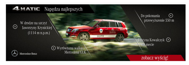 Drugie wyróżnienie za pracę na rzecz Mercedes-Benz otrzymał Liquid. Nietypowa rywalizacja człowieka (Justyna Kowalczyk) z maszyną została zarejestrowana w formie filmu stanowiąc kluczowy element i główną siłę całej kampanii. – Rzadko mamy okazję oglądać w mediach cyfrowych kampanię wykorzystującą kontent video stworzony specjalnie z myślą o nich. Wykorzystaliśmy tę możliwość przy projektowaniu formatów reklamowych i udało się. Cieszymy się podwójnie bo to drugie wyróżnienie dla Liquid w IAB Creative Showcase – tak oto komentuje wyróżnienie Maciej Maciejewski, Head of Liquid