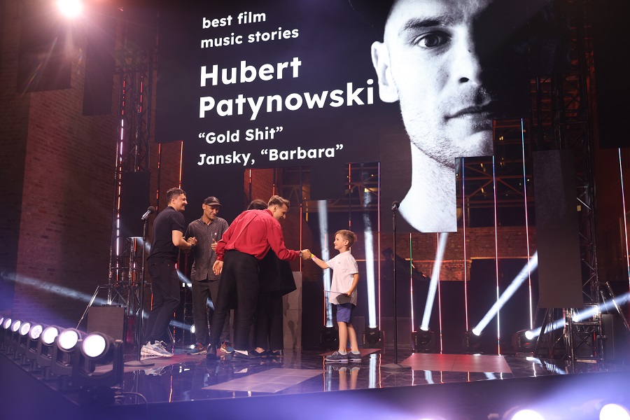 Wręczenie nagrody w kategorii Music Stories dla Huberta Patynowskiego. Na scenie m.in. z małym odtwórcą głównej roli.