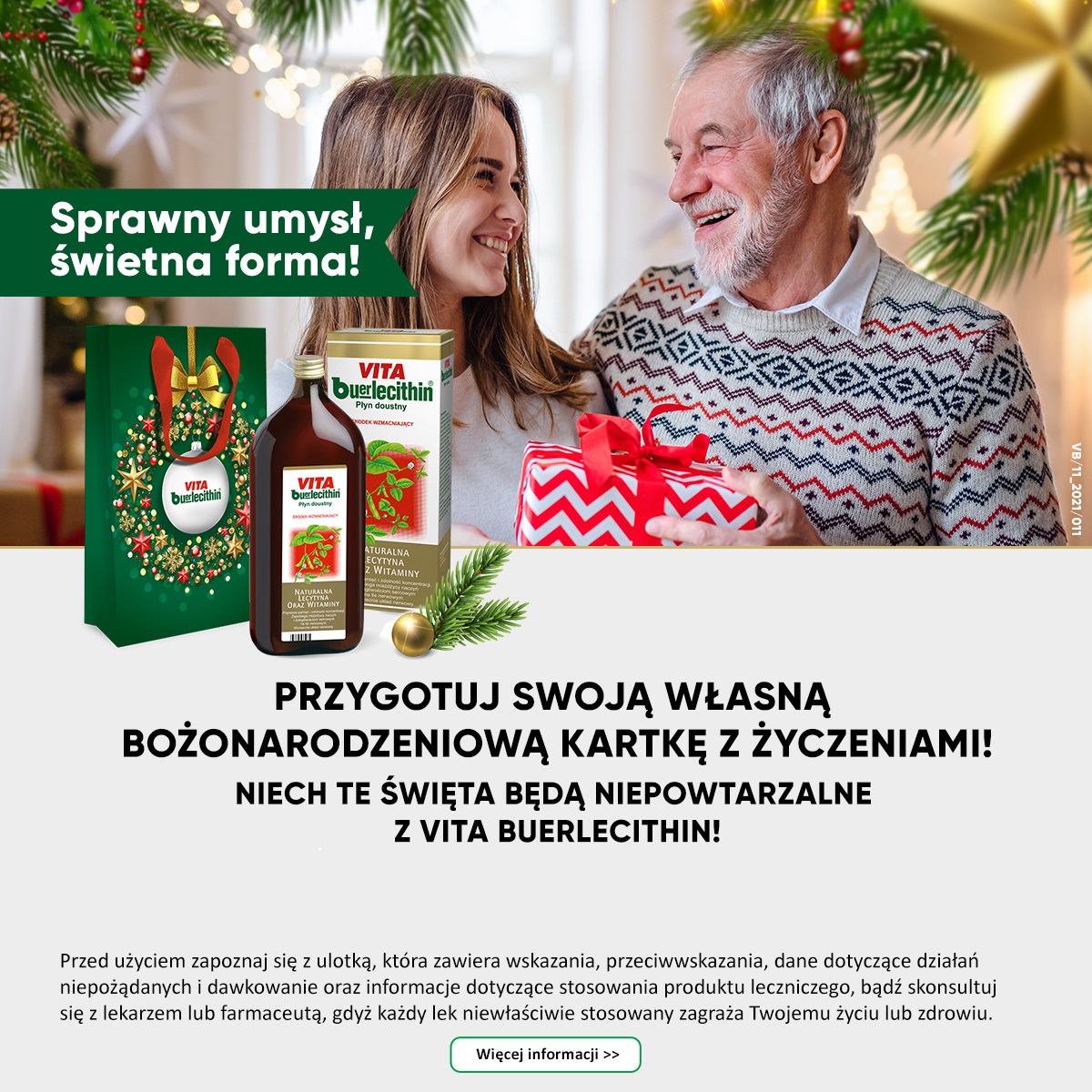 Vita Buerlecithin to uznana marka preparatu wzmacniającego umysł i formę, tradycyjnie już dawanego w prezencie osobom starszym, szczególnie, jako prezent Gwiazdkowy. W tym roku dajemy coś więcej – kartkę świąteczną, w której osobiście składamy życzenia bliskim. To prezent od serca, który będzie zapamiętany długo – mówi Anna Gérard, senior brand manager, Orifarm.